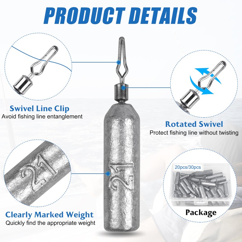 - 【Quality Swivels】Drop shot fishing weights comes with a line clip easy for pencil weights changing and line threading,with 360°freely rotated barrel swivels,decreases line tangling or knot the line.