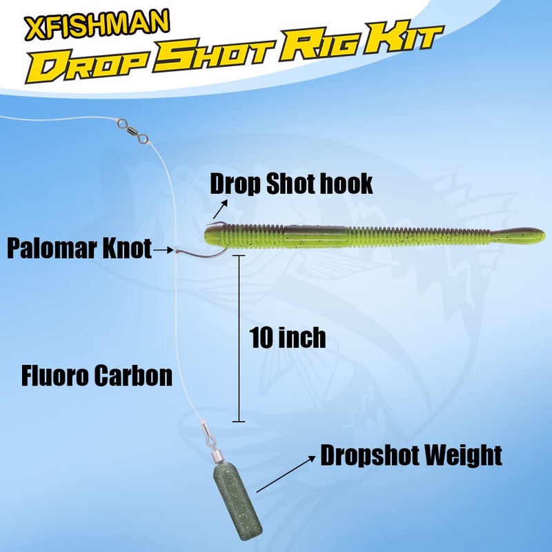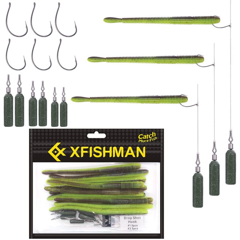 - MONEY-SAVING KIT: Save money and catch more fish with our 22-piece drop shot rig kit, including 10 pcs 4.5" straight tail worms, 6 pcs drop shot hooks (1#, 2#), and 6 pcs drop shot weights (1/4oz, 3/16oz, 1/8 oz). Ideal for bass fishing, this kit has everything you need to succeed on the water. Get your XFISHMAN Drop Shot Baits today and start catching more fish!