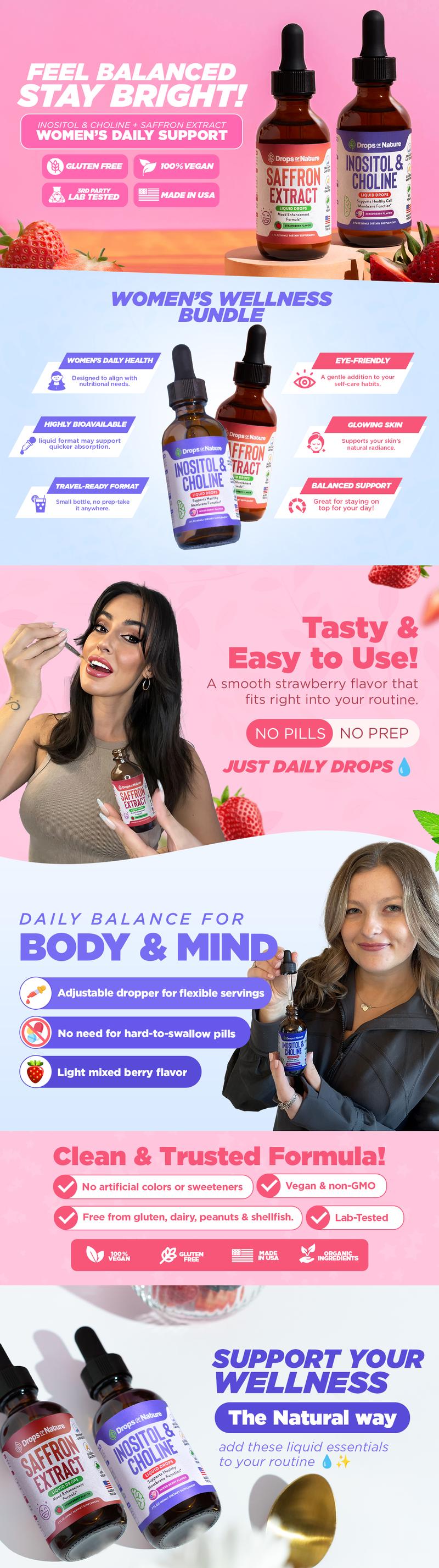 Drops of Nature Women’s Wellness Bundle – Inositol & Choline with Saffron Extract Liquid Drops | Natural Balance & Inner Wellness Support | Made in USA