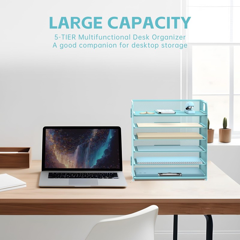 - [HIGH-QUALITY MATERIAL] This paper organizer is made of high-quality metal mesh and reinforced with a sturdy steel frame. In addition, the outer layer of our desk organizer is coated with an anti-rust coating. The overall design is simple and robust, which will definitely become a good assistant in your work.