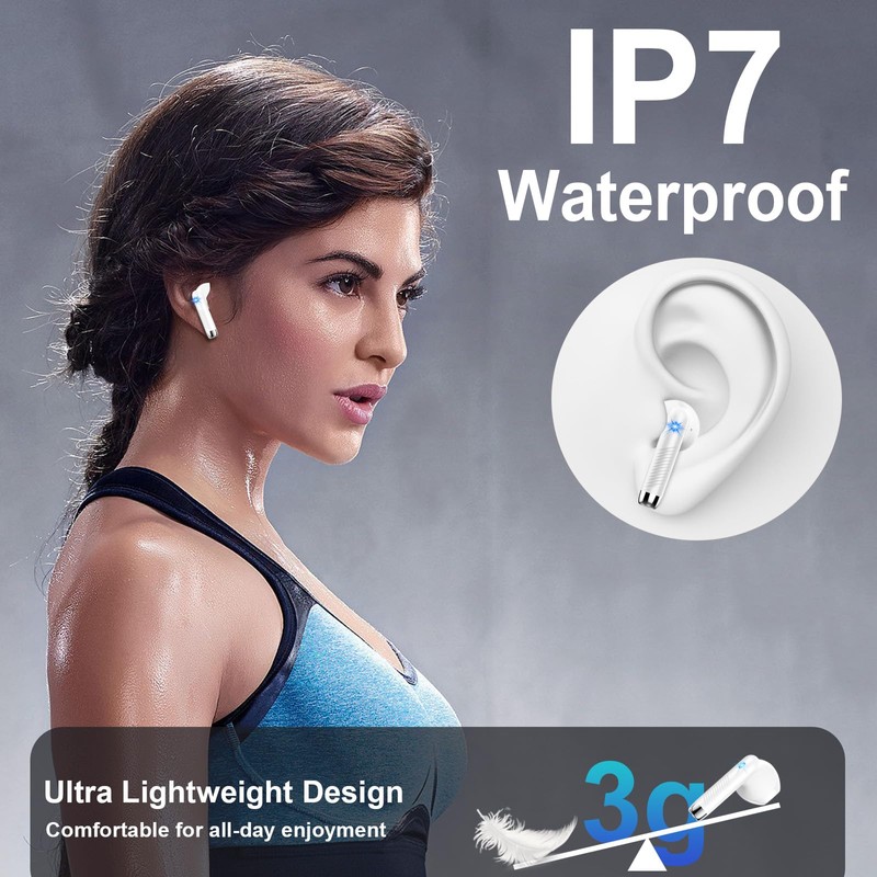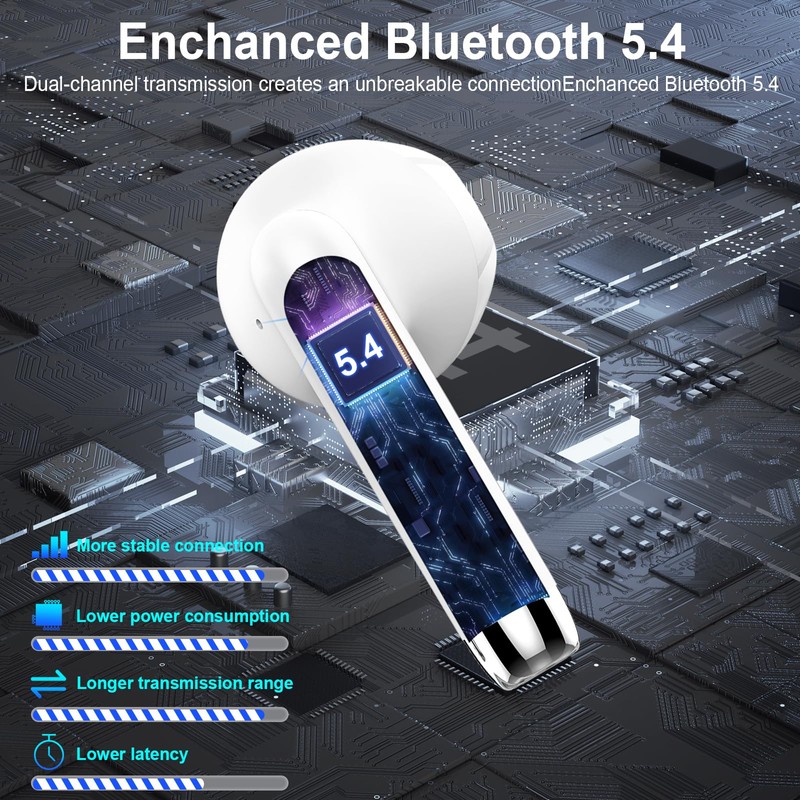 Drsaec Wireless Earbuds, Bluetooth 5.4 Headphones in Ear with Deep Bass, 42H Bluetooth Earphones ENC Noise Cancelling Mic, 2025 New Ear Buds IP7 Waterproof, Mini Wireless Headphones LED Display, White