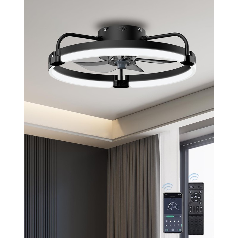 DRSPEE Ceiling Fans with Lights and Remote, 20" Low Profile Ceing Fans with 6 Wind Speeds, 3000K-6500K Dimmable Modern Ceiling Fan for Bedroom, Black