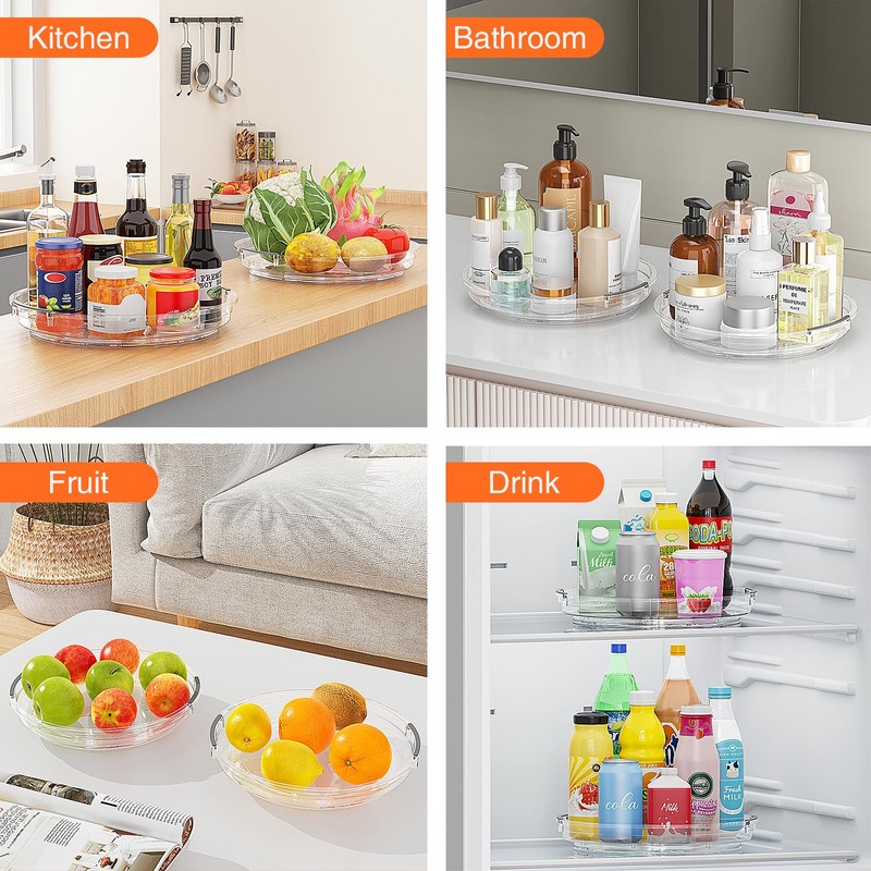 - Save space: refrigerator turntable can hold spices, spices, bottles, cans, drinks, coffee, baking accessories, snacks, shampoos and makeup.