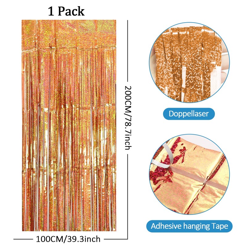 - Versatile and decorative: glitter curtain foil fringe are not only suitable for parties or celebrations, but also can be used as a decorative element in a room. They can be used as a background for photo shoots, as a room divider or even as a curtain for windows.