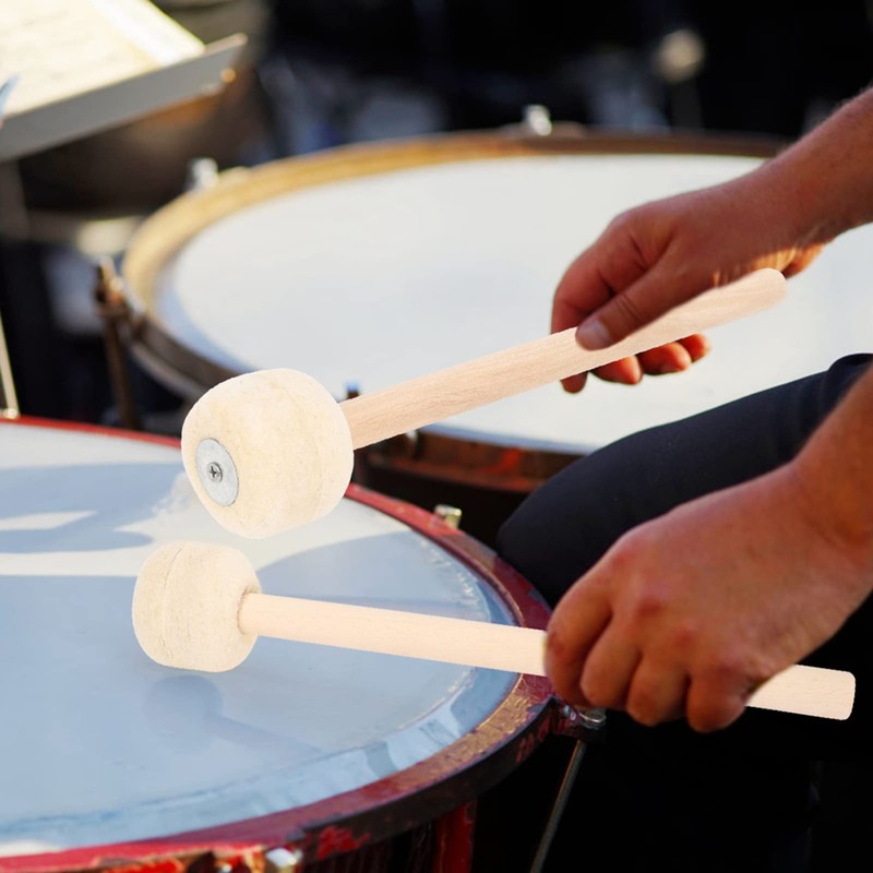Drum Mallets, 2 Pieces Wool Mallets, Hammer with Wooden Stick and Wool Felt Head, Wooden Handle, Drum Stick Accessories for Percussion Instruments, Drum Stick with Wooden Tip for Students and Adults