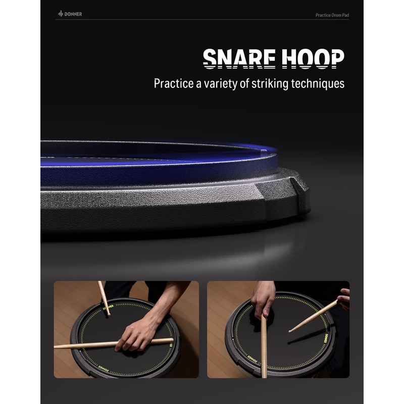 - 🆕[Modern Snare Techniques] The drum pad has a slot carved into the hoop to put drumsticks. It also has a standard height rim for modern snare techniques.