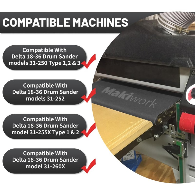 Drum Sander Feed Belt Conveyor Compatible with Delta 18-36 Drum Sander - 100 Grit Silicone Carbide, 18" x 47-1/2"