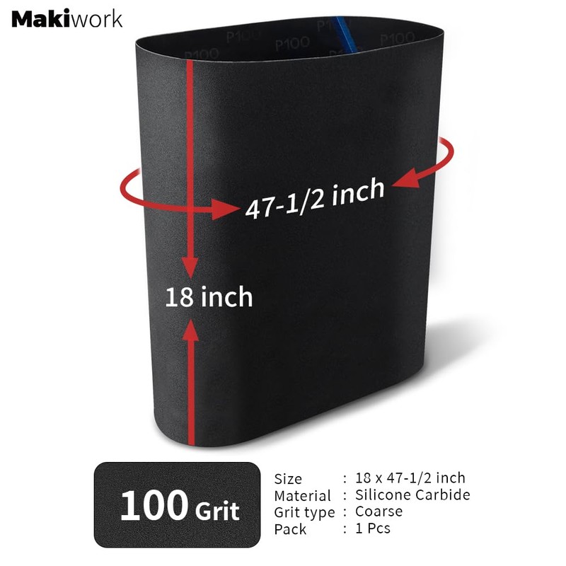 - Dimensions: 18" width x 47-1/2" circumference, 100 grit.