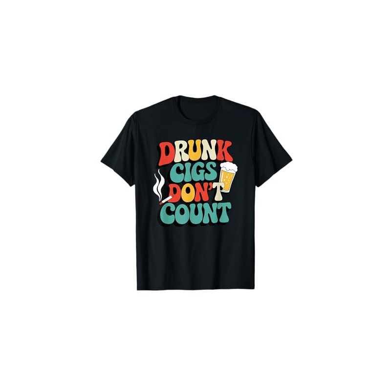 Drunk Cigs Don't Count Humor Drinking Groovy T-Shirt