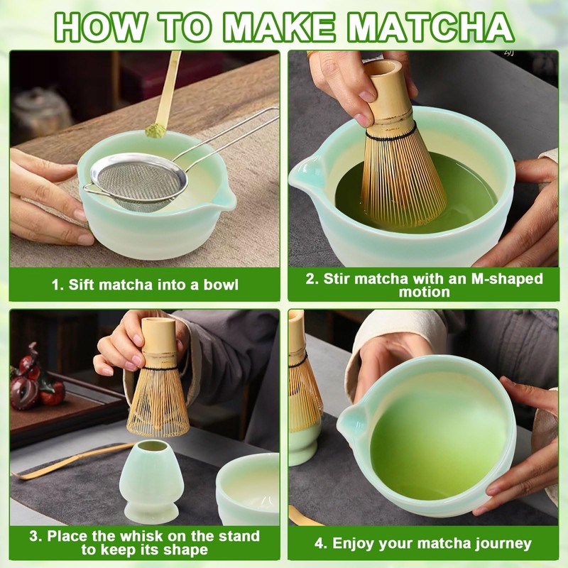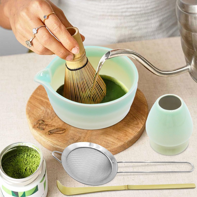 - MATCHA BOWL SET This five-piece matcha teaware contains all the essential utensils for preparing matcha. With an elegant matcha bowl, golden bamboo matcha whisk, golden bamboo matcha spoon, whisk stand and strainer, you can easily make flavorful and creamy matcha preparations.