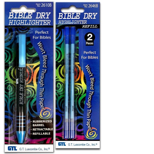 Dry Bible/Book Highlighter Pen With 2 Pack Bible/Book Dry Highlighter Refill (Blue)