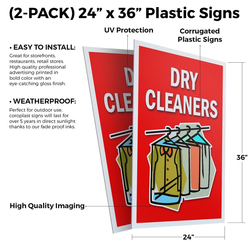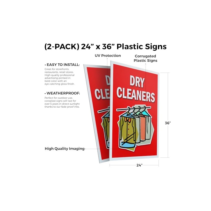 Dry Cleaners (2-Pack) 24" x 36" Plastic Signs | Sign Insert 4mm Corrugated Pl...