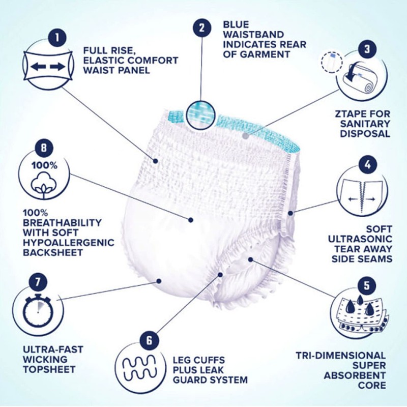 - Noticeably Softer and more Comfortable: Our cloth-like, super-soft non-woven waistband ensures total coverage (front and back) while being noticeably softer than other premium adult underwear. The chassis cut enhances the comfort for extended wear.