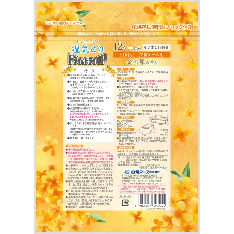 Dry & Dry UP Drawers and Garment Cases, 12 Sheets, Osmanthus Scent, Dehumidifier, Moisturizer, For Clothes