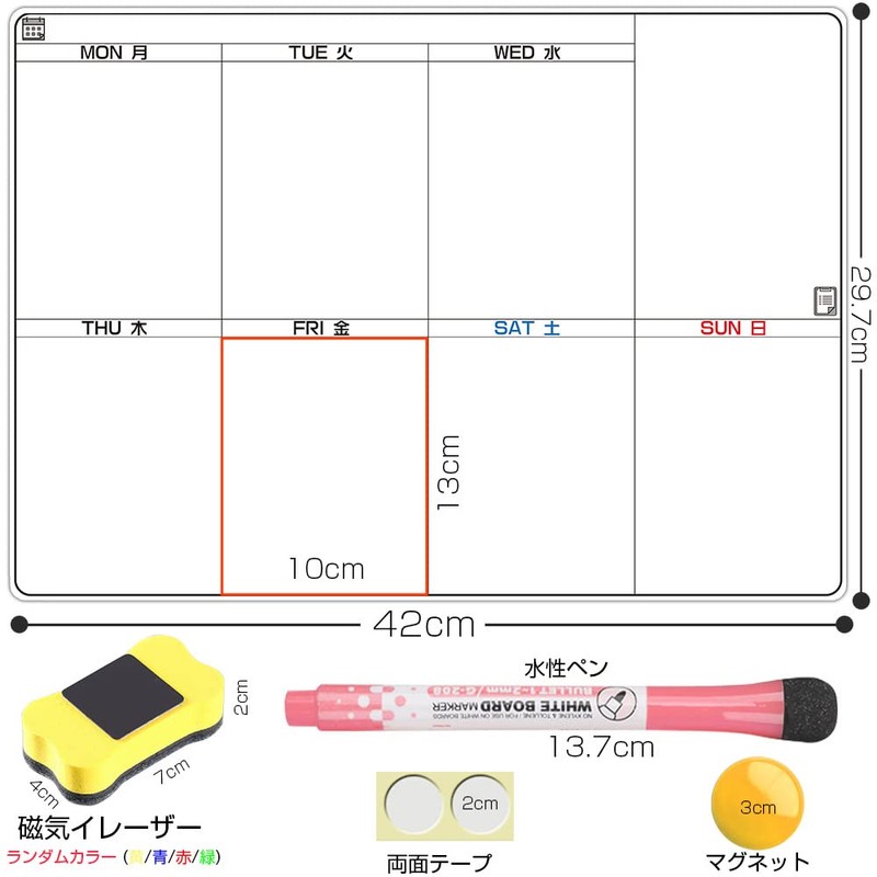 Dry Erase Refrigerator Magnetic Sheet Calendar, Easy to Erase, Peel and Stick on Wall, Supports Bulletin Boards, Schedules, Memos, A3 Size (Weekly Calendar)