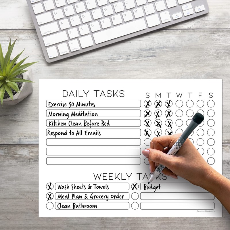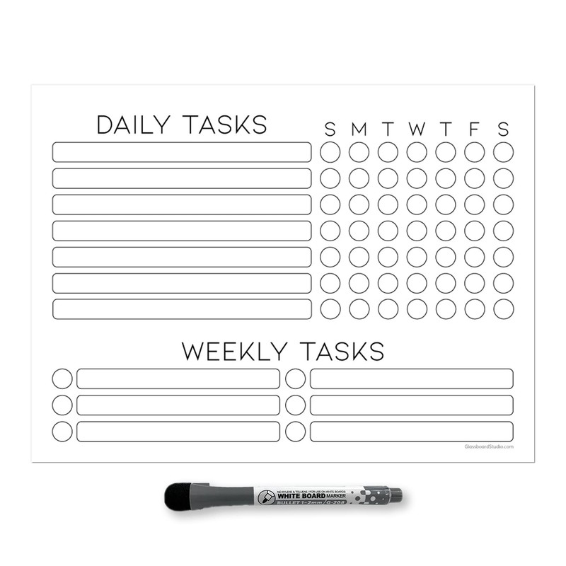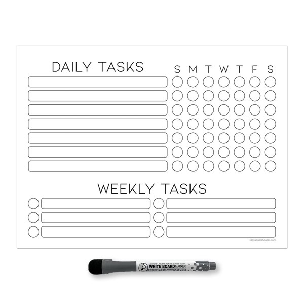 Dry Erase Whiteboard Task Planner by Glassboard Studio | Removable and Restickable Adhesive Decal | Fine-Tip Magnetic Marker Included (9 x 12 inches, White)