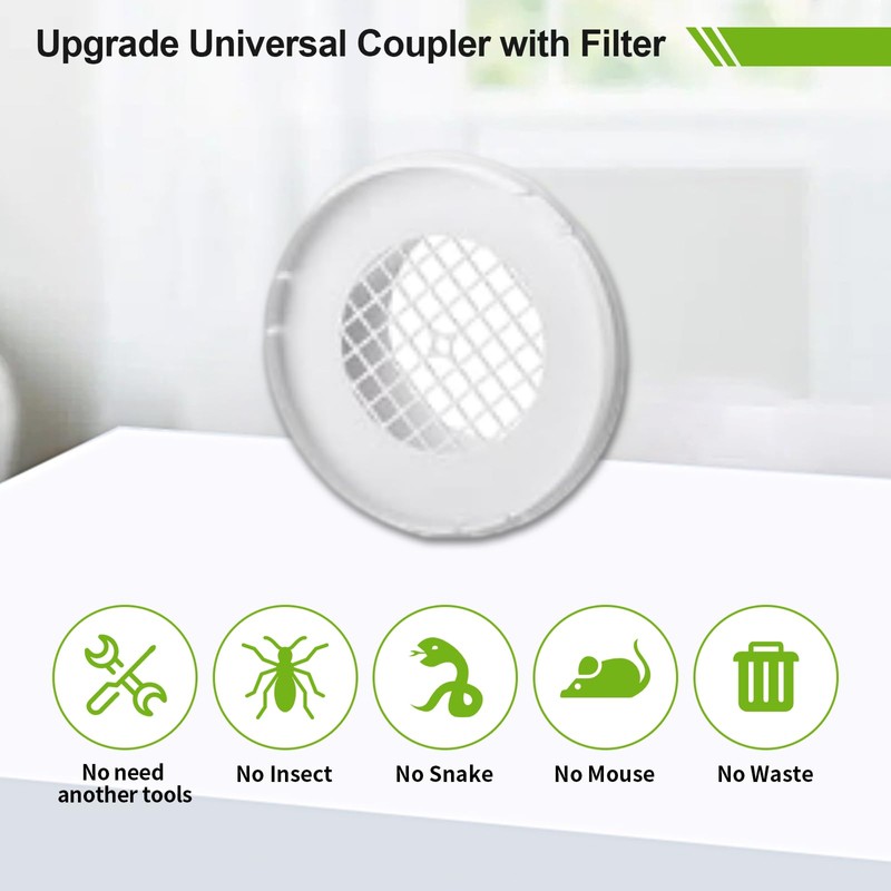 - Quick Installation: No need other tools. Simply screw the dryer vent hose to hole in seal plate, adjust seal plate for desired length to fit your window, then install it to the window