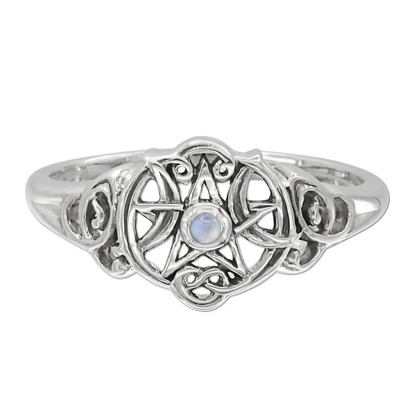 Dryad Design Sterling Silver Heart Pentacle Ring with Natural Rainbow Moonstone (Size 4-15) (15)