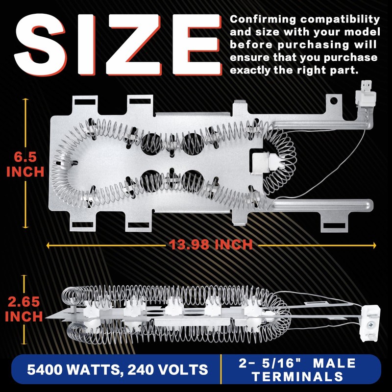 - Customer Care:Within 5 years period, if our Bakaoof dryer heating element & thermal fuse kit has quality problem or missing parts, please e-m us in anytime.we will help you solve the problem as soon as possible. Customer satisfaction is our unremitting pursuit