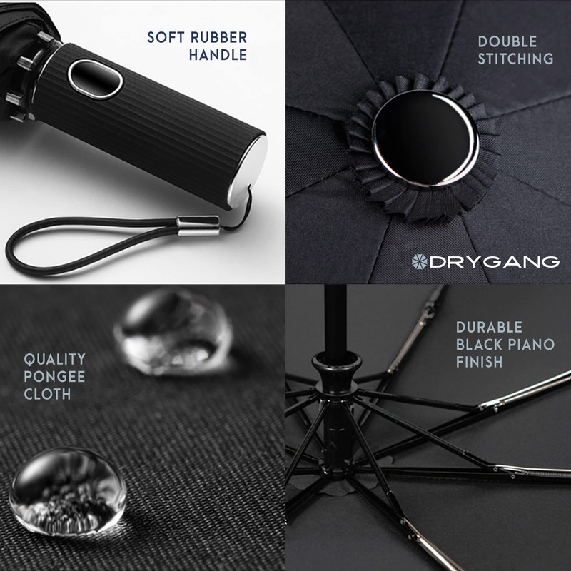 DRYGANG The Urban Umbrella - Premium Windproof Compact Automatic Travel Umbrella, Small Portable Lightweight & Strong Umbrellas for Men & Women + Advanced Non-Stick, One Button Telescopic Auto Open