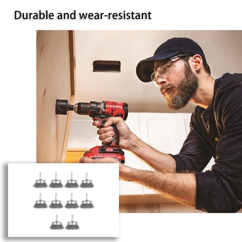- 【Complete Set】: Receive 10 wire cup brushes with a convenient hex shank. The 2-inch round brushes fit any 1/4" electric or pneumatic drill, providing versatility and ease of use.