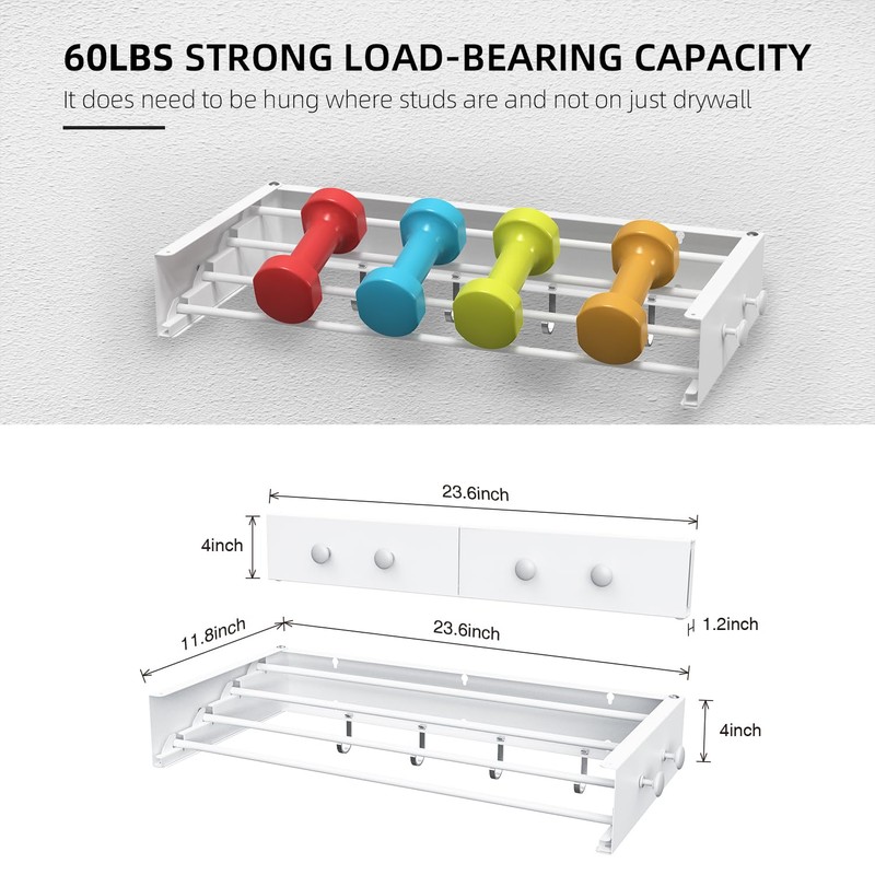 - 【Versatile Upgrade, Heavy Duty & Sturdy】Our wall drying rack update with 8 hooks for easy hanging of clothes,socks,underwear,tank tops,4 drying rods of the drying rack clothing wall mounted are made from premium stainless steel,thicker and robust,no bending or deformation.60lbs Capacity.Compact yet functional.