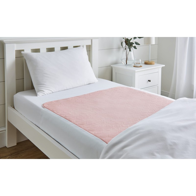 Drylife washable bed pads offer the perfect combination of comfort and performance at a great price. The pad is extremely durable, very thin, and super absorbent. The long life top layer is an extremely compact soaker which absorbs up to 3000 millilitres of liquid quickly, and is supported by a fluid proof barrier for extra protection. Tucks can be tucked under a mattress to ensure the bed pad remains in place. Can be washed up to 95°C and can be tumble dried on a medium setting.