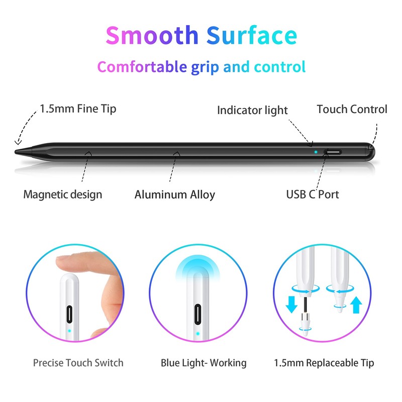 • 【Postventa sin preocupaciones】Contiene 1 lápiz óptico para iPad, 4 puntas de repuesto, 1 cable de carga tipo C y 1 manual de usuario. Si tiene alguna pregunta sobre nuestros productos, no dude en contactarnos.