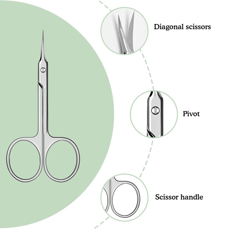 - ULTRA FINE TIP The curved design of cuticle scissors extra fine allows application at different angles and provides optimal flexibility. It adapts to different shapes and sizes such as nail beds and fingertips. With the nail scissors, you can safely perform various cuticle cuts or beauty care work, whether straight or curved