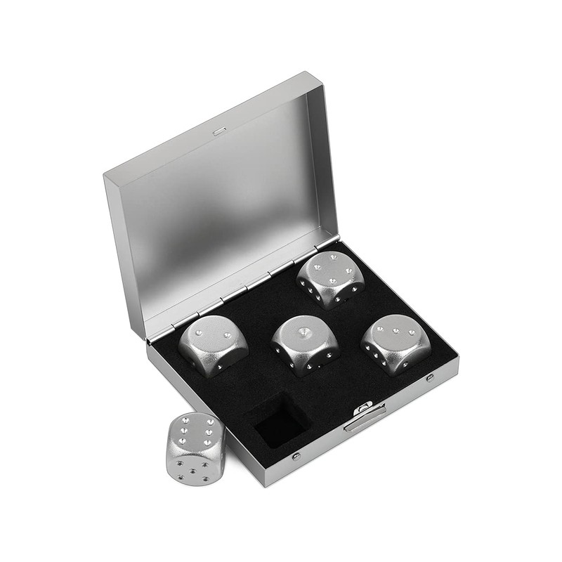 DS. DISTINCTIVE STYLE Aluminum Alloy Dice 5 Pieces 16mm Portable Metal Dices with Square Case 6 Sided Dice for Drinking Party Game - Silver