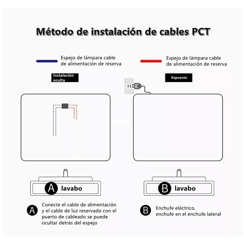 * Puede colocarse vertical u horizontalmente según se requiera y su instalación es muy sencilla, basta con enchufar una lámpara normal de 110 voltios o si prefiere ocultar los cables, basta con buscar los terminales positivo y negativo y conectarlos a las tomas eléctricas más utilizadas El baño cuenta con un manual de instalación incluido.
