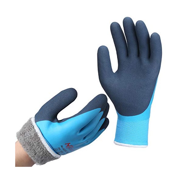 • THERMAL WINTER WORK GLOVES: This insulated men's glove is made from 15 gaugeblue hycool on the outside and acrylic terry brushed on the lining. The soft and comfortable lining keeps your hands warm in the winter and cold. Once you have our warm work gloves, your work efficiency will not be affected by the cold environment.