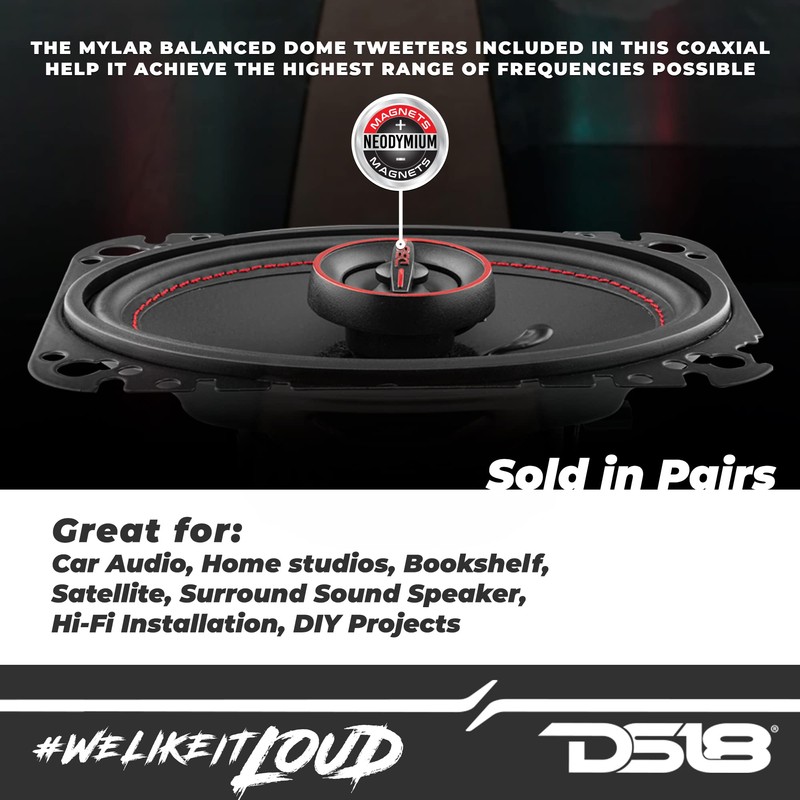 DS18 G4.6Xi GEN-X 4x6 2-Way Coaxial Speakers 135 Watts Max Power 45 Watts RMS 4-Ohm Mylar Dome Tweeters with Neodymium Magnet - Clarity Unparalled by Other Speakers in Their Class - 2 Speakers