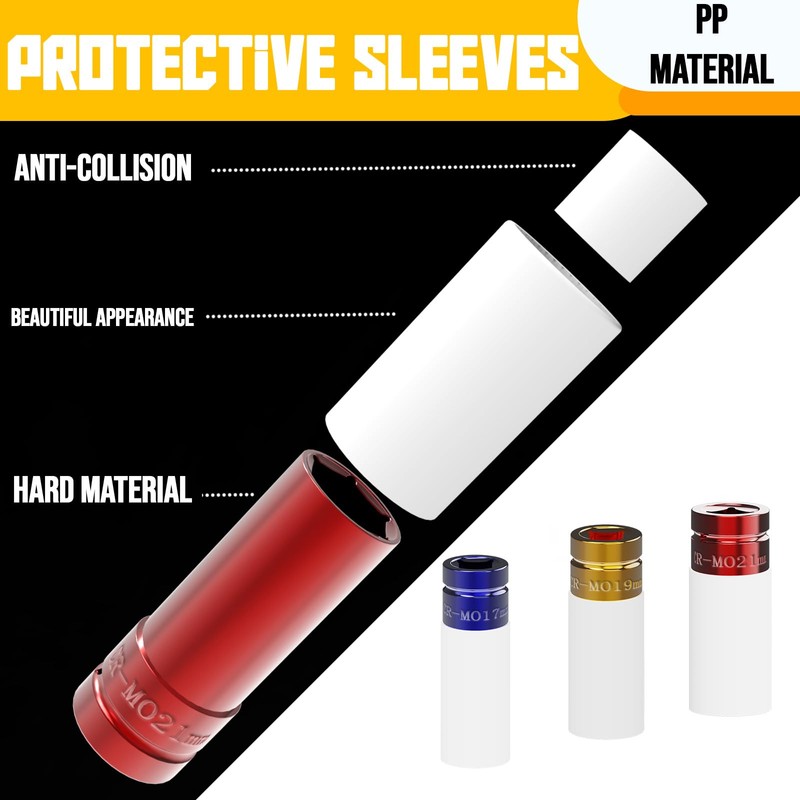 - 【CR-MO alloy steel + PP protective sleeve for exceptional durability】 The wrench and socket are made of chrome-molybdenum alloy steel, offering high hardness and wear resistance; The socket is equipped with a PP protective sleeve, which is impact-resistant and scratch-resistant, while also protecting the bolt surface.