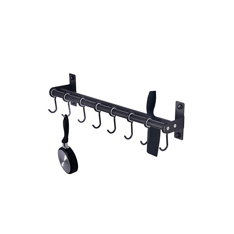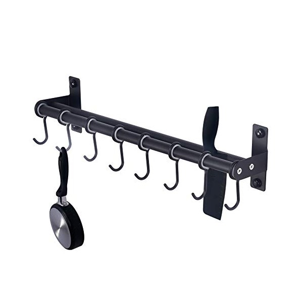 Dseap Pot Rack - Pots and Pans Hanging Rack Rail with 8 Hooks, Double Bars, Pot Hangers for Kitchen, Wall Mounted,Black