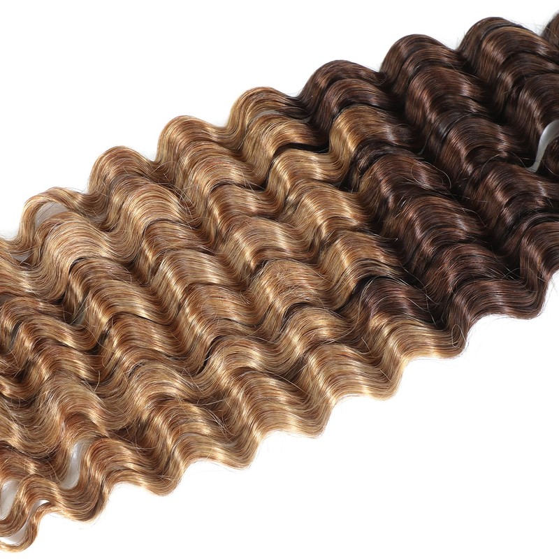 DSEKCAIN Ombre Double Drawn Bulk Human Hair for Braiding No Weft Only Hair for Micro Braids Crochet Hair for Bohemian Box Braids 100 Grams (2 of 50g) 20 inch Deep Wave T1B/4/27