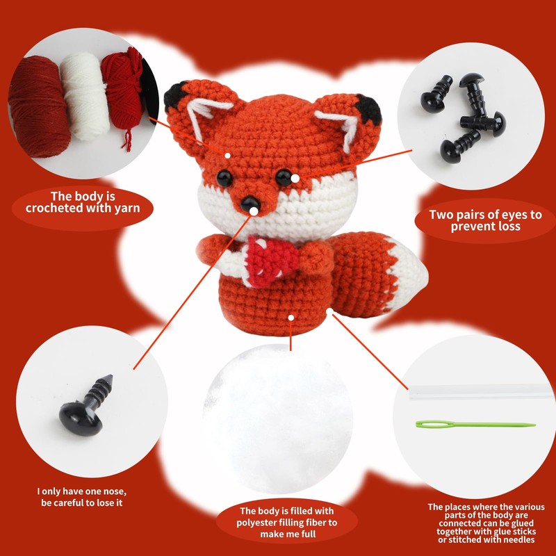 - 【Fox Crochet Kit】Knitting these adorable fox animals with yarn is both easy and fun. Knitted animals can be used as bag charms or to decorate your living space!
