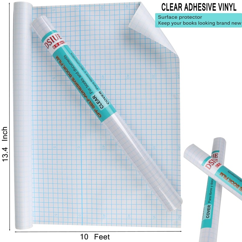 - Clear Contact Paper Roll measuring about 13.4-inch wide by 10-feet long for around 10 textbooks cover DIY craft without book size fitting worries.