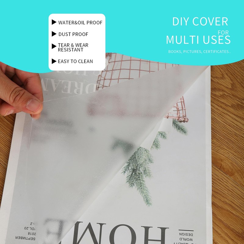 - This self-adhesive feature plastic book cover allows for a removable covering during installation with no residues, book covering is clear so you are able to see your book or other decorations underneath, it also good for crafts and school projects.
