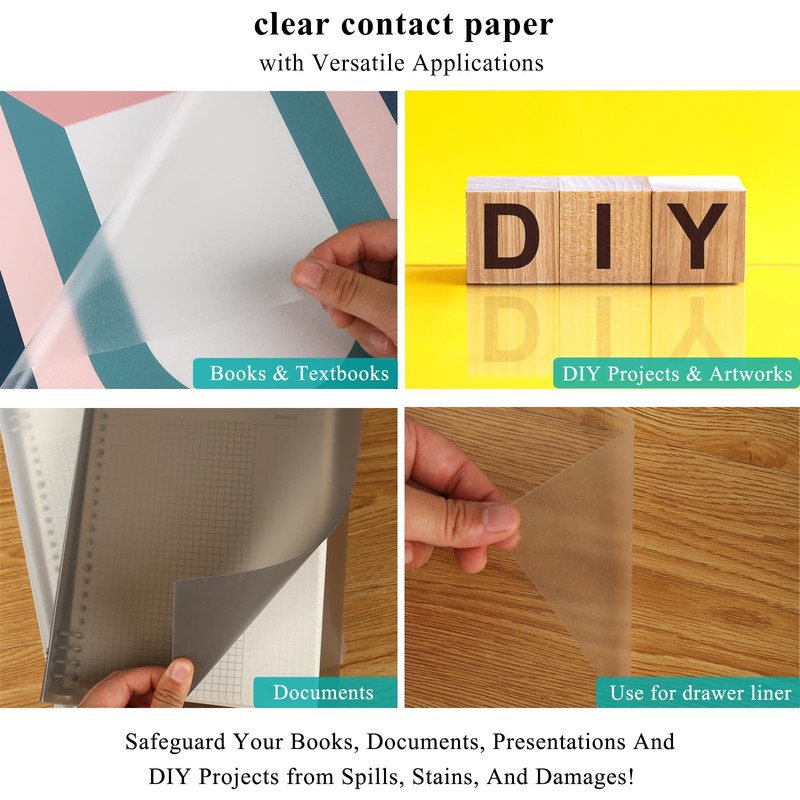 - Our transparent contact paper suitable for school textbooks, office documents and paperback books at home. The self-adhesive plastic book covers protector can line all sorts of soft and hard cover books, posters, papers and even shelves for extra protection.