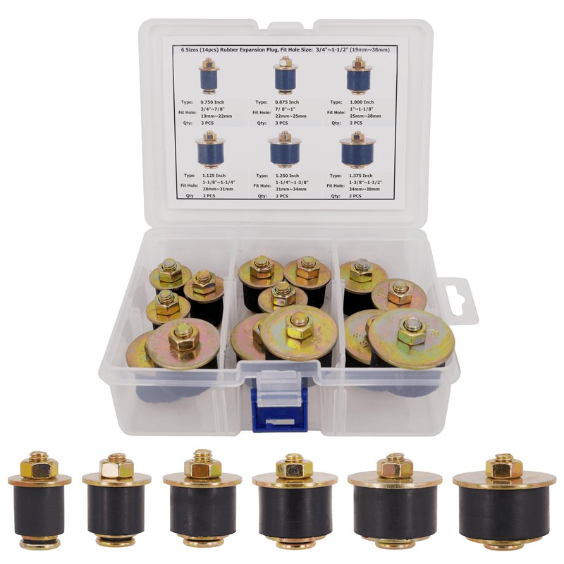 Dsnaduo 6 Sizes (14pcs) Neoprene Rubber Expansion Plug 3/4" 7/8" 1" 1-1/8" 1-1/4" 1-3/8", Automotive Rubber Freeze Frost Plug Fit Hole Size: 3/4"~1-1/2" (19mm~38mm)