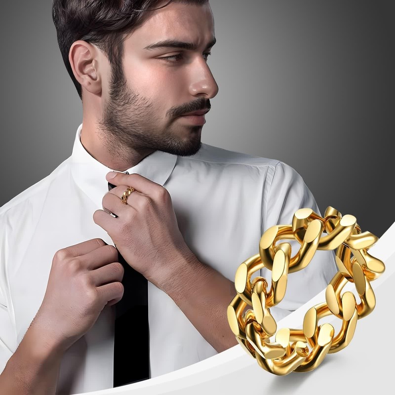 - Rings for men 8 mm wide, simple chain hollow design, suitable for cool punk rock style.