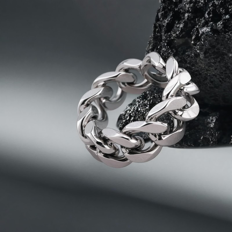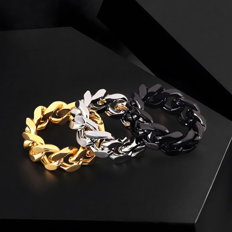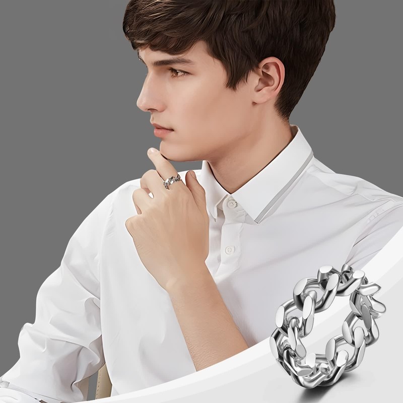 • Men's wedding rings 8 mm wide, simple chain hollow design, suitable for cool punk rock style.
