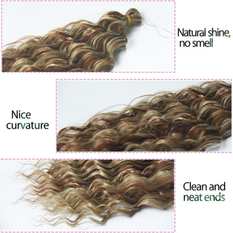 Dsoar Deep Wave Braiding Hair Ombre Deep Twist Wavy Synthetic Hair Highlight Curly Hair Extensions for Braids Ocean Wave Hair Bundles 22 Inch 3 Packs, 24/30#