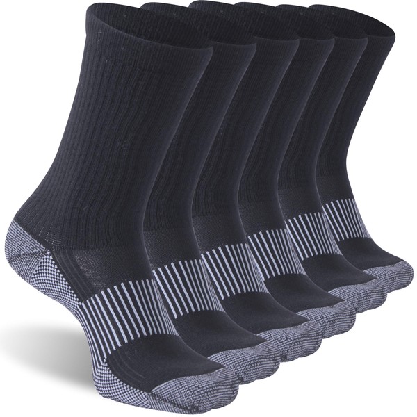 Dsource Copper Socks for Men, Unisex Mid Calf Running Mountain Climbing Hiking Camping Trekking Socks, 6 Pairs Black XX-Large