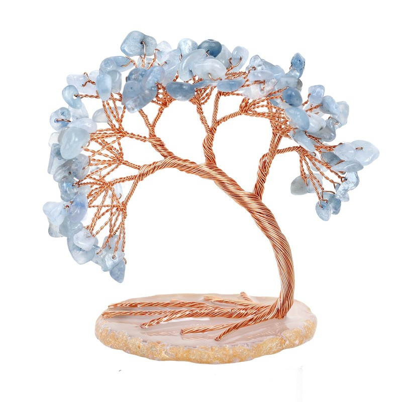 - Hand Wrapped Wire Crystal Tree Figurine: The crystal tree decor is made of tumbled stone leaves, copper wire trunk and branches, and an agate slice base. The tree of life is molded into the shape of a cypress, signifying resilience and prosperity. Set on a agate slice, it adds a touch of elegance and stability to the whole ensemble. Due to the uniqueness of the crystals and the fact that stone tree are handmade, the color, size and texture of each tree may vary slightly from the images shown.