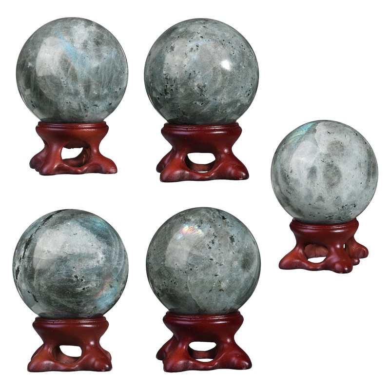 dssmboom Labradorite Crystal Ball with Resin Stand for Home Office Decor, Feng Shui Crystal Sphere for Meditation and Witchcraft, 41-50 MM