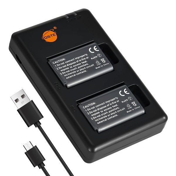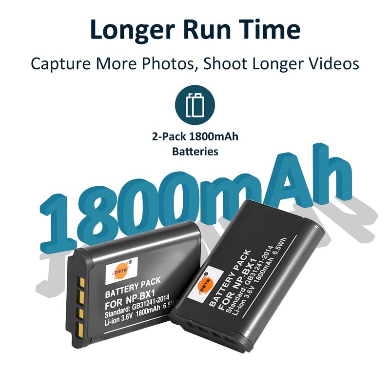DSTE 2-Pack NP-BX1 + Rapid Dual Charger Compatible with Sony M8 ZV-1 HX80 HX90V HX95 HX99 HX50 HX60 RX100 II WX300 WX350 WX500 HDR-GW66V CX240 RX1 RM2 RX1R II RX10 II DSC-RX100 VII AS50 AS300