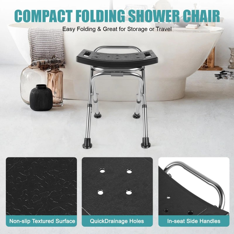 With its magical height-adjustable feature, this chair caters to all heights – from the vertically challenged to the towering giants. Just imagine your shower turning into a relaxing spa experience without the risk of a water ballet mishap. Plus, it folds up faster than you can say “slippery when wet,” making storage a breeze for those who like to keep their bathroom clutter-free.