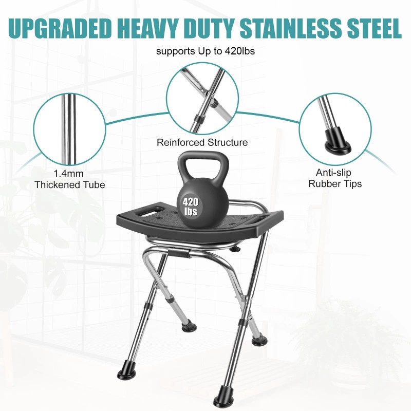 【Stainless Steel Durable Materials】:Our adjustable folding shower chair , water-resistant materials, our Shower Chair is built to withstand the test of time, ensuring a reliable bathing solution that stays strong and sturdy with daily use.